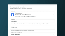 Rather than building a custom integration with Facebook and Google APIs, Firstparty makes it easy to send conversions to either platform based on any Event you collect with Firstparty. This makes it easy to optimize ads for a conversion in the browser that historically may have been missed due to an ad blocker, a sale that occurs weeks later after a trial is complete, or for closed-won opportunities tracked in a CRM like Salesforce.