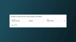 Metrics also support Filters, which limit the data that is included when calculating the value of that Metric. Filters are applied to the entire Metric, and will affect how the equation is calculated at runtime within a Report.