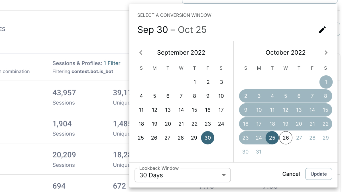 Skip the typical "implementation will be weeks or months" situation you're used to. Install Firstparty's collection script on your site or connect to your existing data warehouse, then tell us what you consider a "conversion".